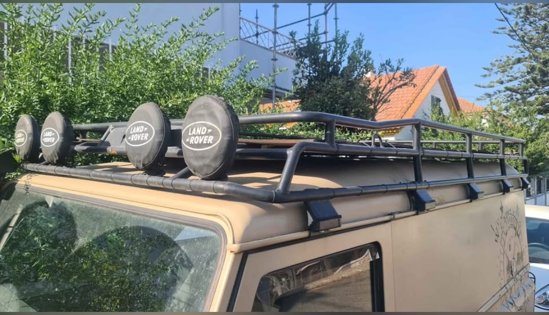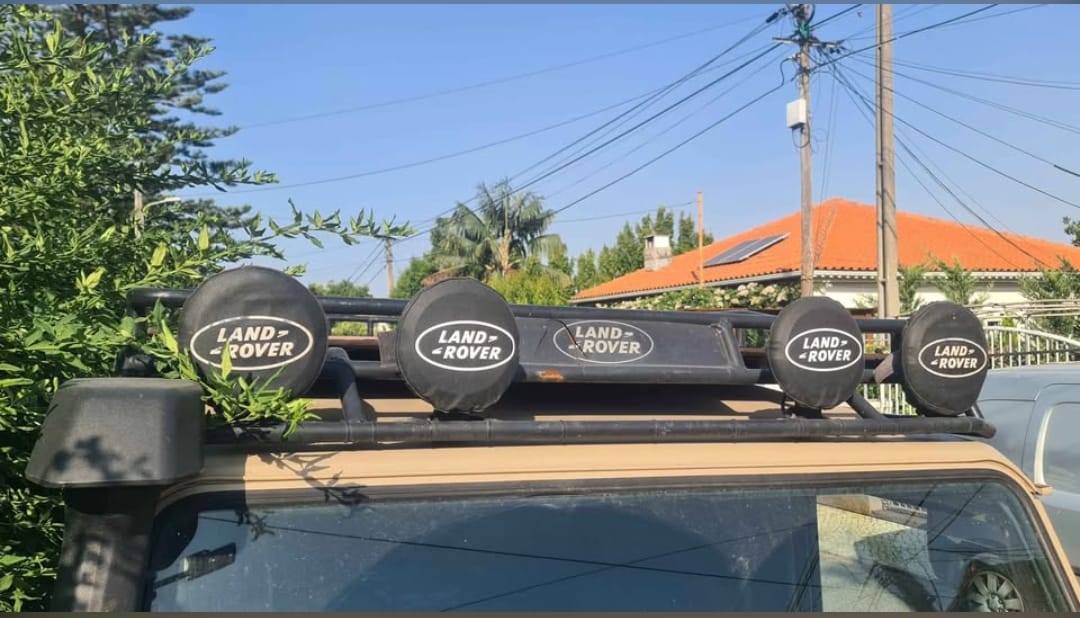 Grade original G4 para Land Rover Defender 110 com 4 faróis Land Rover e capas.